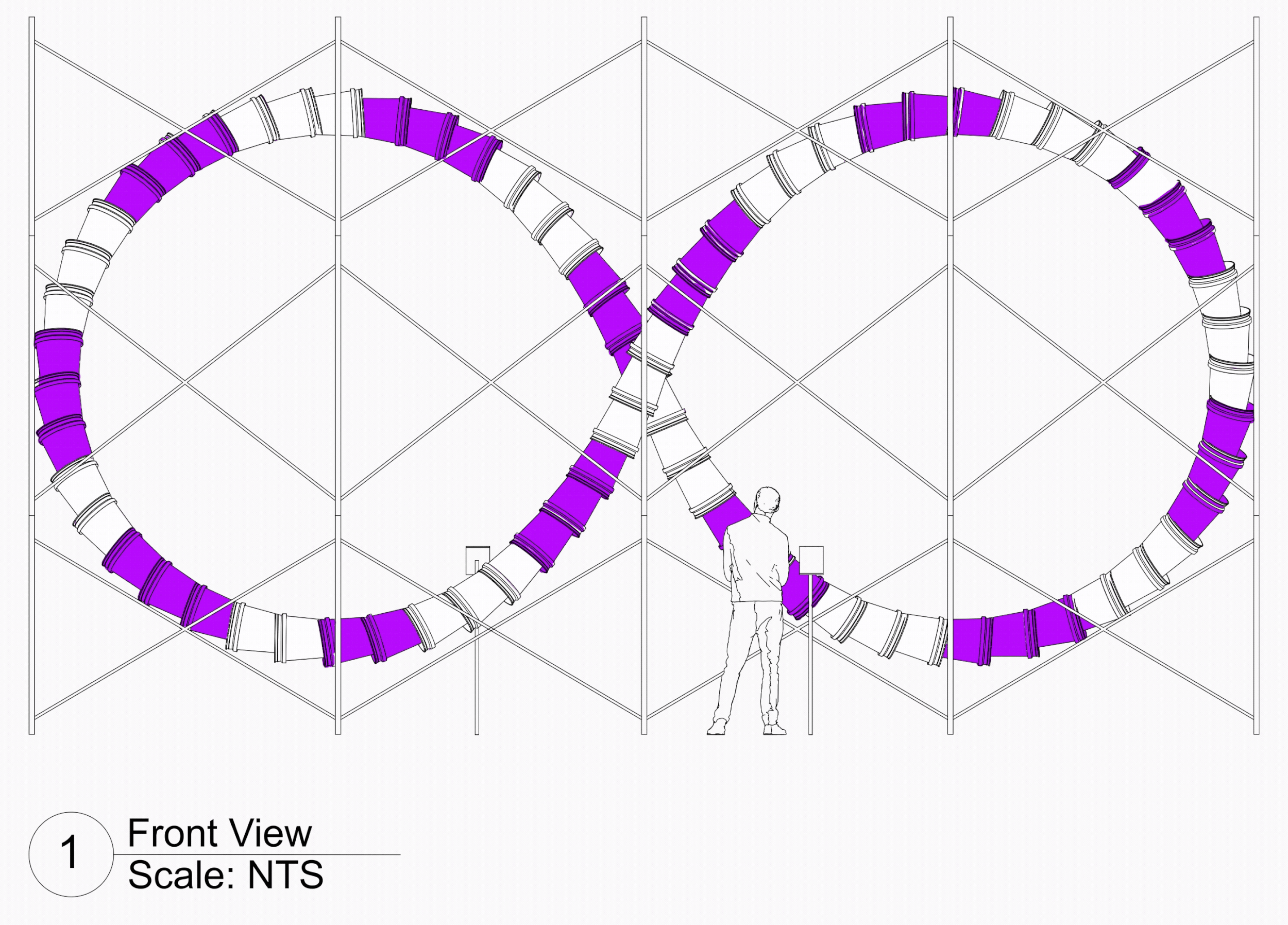 I had the opportunity to collaborate with artist Jason Peters to develop CAD models for a series of sculptural installation proposals. The sculptures—built from stacked 3- and 5-gallon buckets threaded with programmable lights—form looping, expressive structures that glow at night.